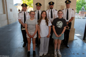 Before leaving the Somme, 64 students and seven staff gathered in front of the Basilica in Albert, which has a golden Madonna and Child figure on top deeply associated with WW1 troops’ memories of the Great War.