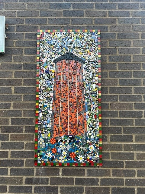 During October, Y5 pupils had the exciting opportunity to collaborate with local artist Jim Anderson on a special project to mark the school’s 50th anniversary. The project culminated in a breathtaking mosaic, designed and led by Jim, that draws inspiration from the local water tower, which is also our school logo. The mosaic now takes pride of place at the front of the school, visible to parents, visitors and members of the local community. It serves as a lasting reminder of the school’s 50-year journey, combining the children’s collective creativity and the heritage of our school. We are thrilled to have this beautiful mosaic as part of Linton Heights’ legacy, and we look forward to seeing it continue to inspire future generations of pupils and visitors alike.