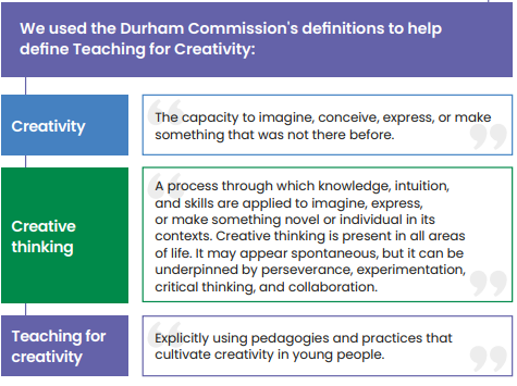 Download the full report at the bottom of this page, or explore case studies of the research in action and resources created to help other educators enhance creativity in their classrooms.
